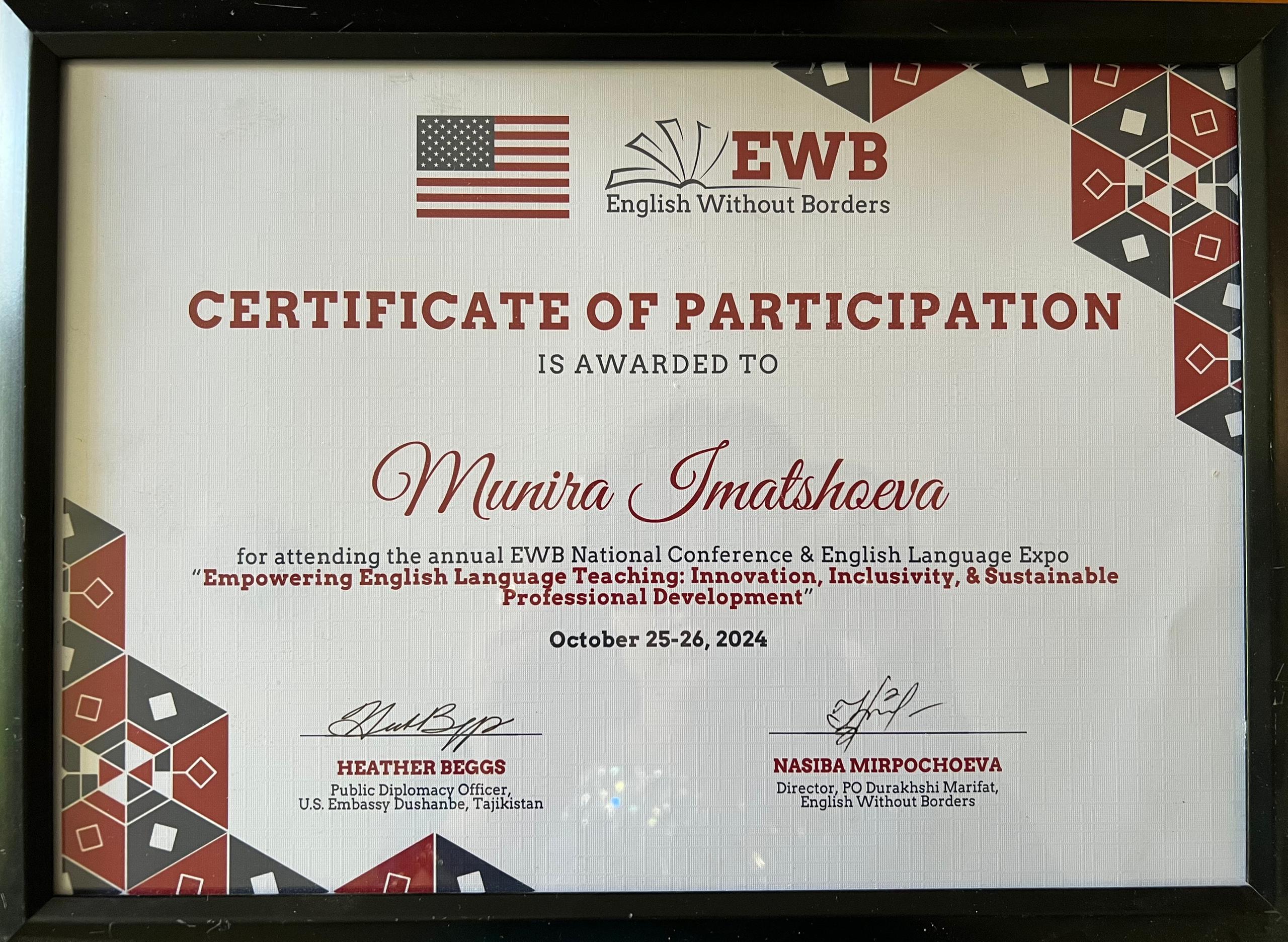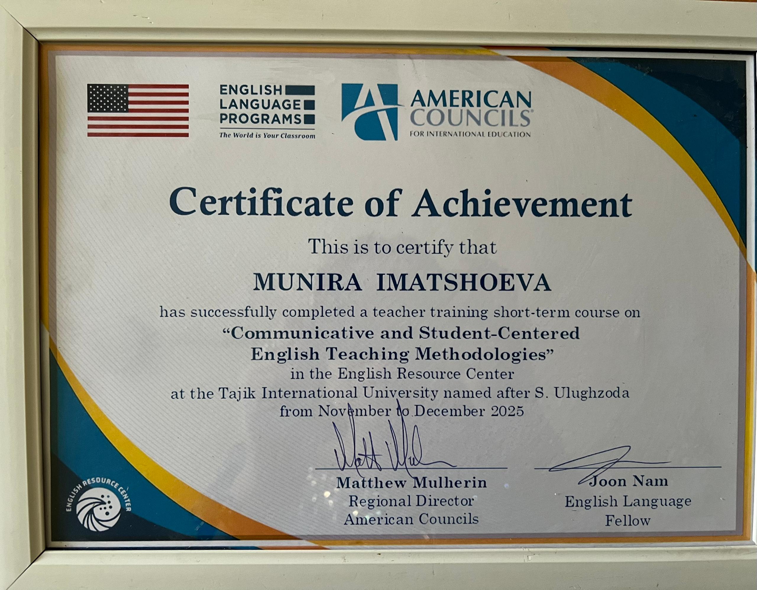 Кафедраи забони англисӣ барои ихтисосҳои ҳамгиро минбаъд низ кӯшиш ба харҷ медиҳад, то дар самтҳои таълим, илм ва тарбия боз ҳам муваффақтар гардида, саҳми худро дар таҳкими сатҳи забондонӣ ва рушди тафаккури илмии донишҷӯён гузорад.