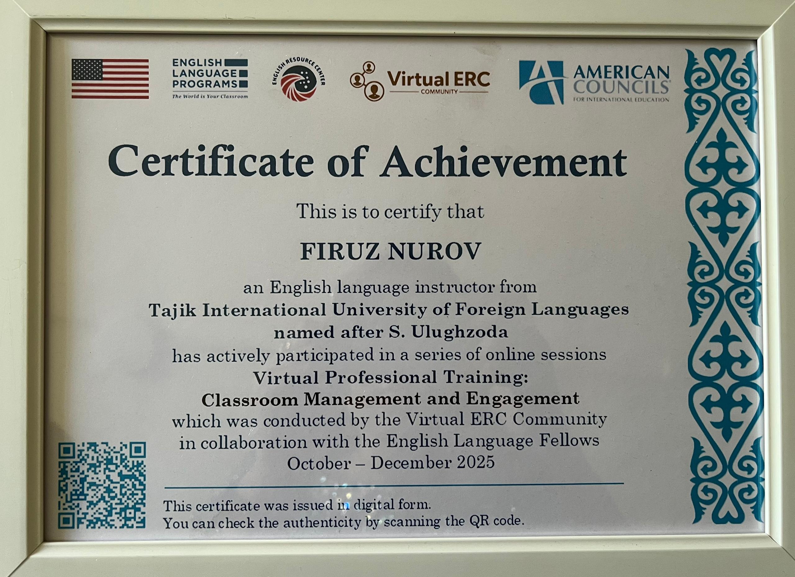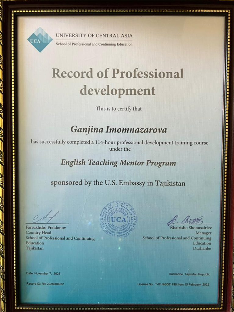 Дараҷаи илмӣ: Номзади илмҳои педагогӣ;