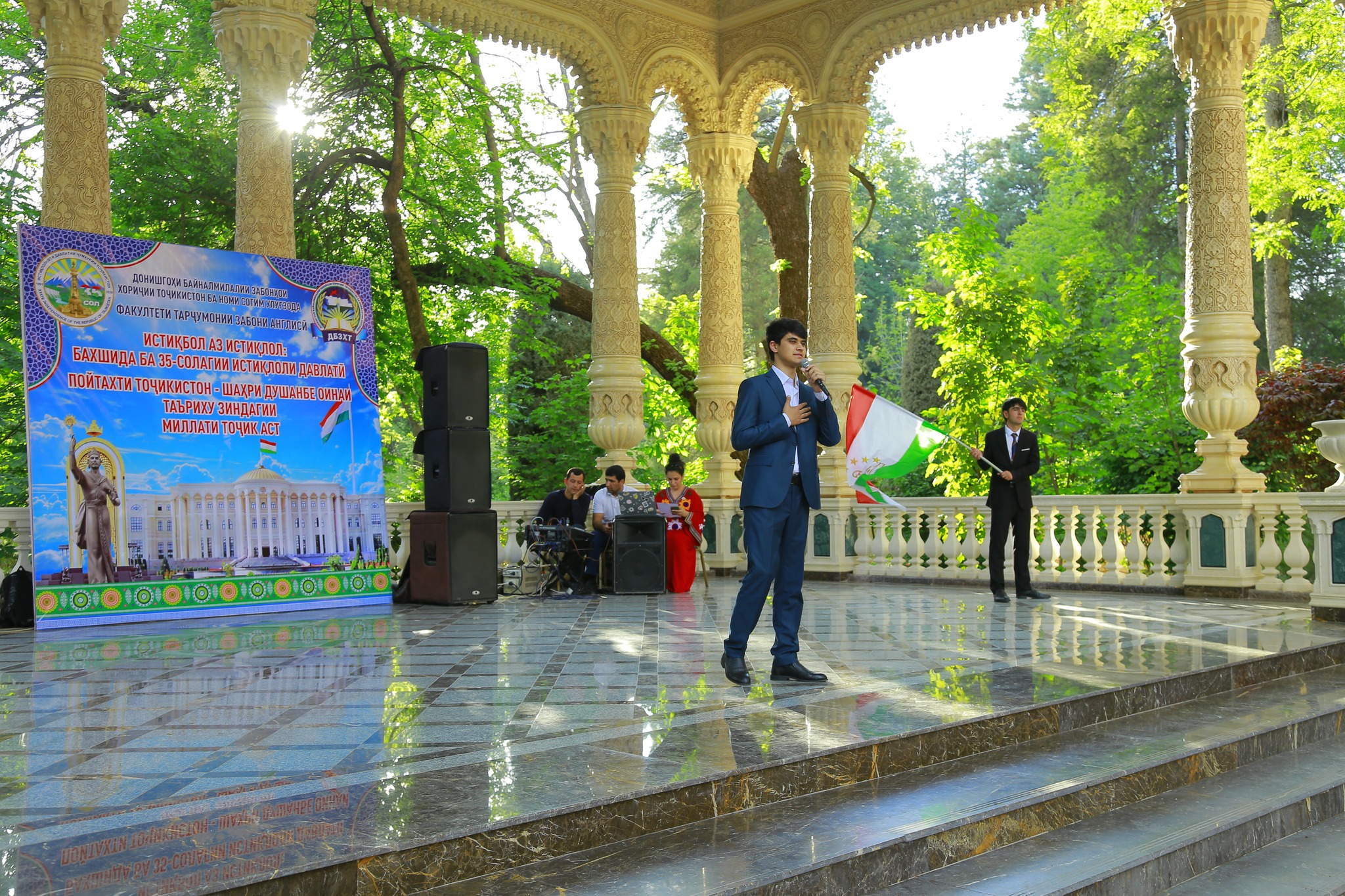Омӯзгорону донишҷӯёни факултети тарҷумонии забони англисӣ барои сазовор пешвоз гирифтани 35 – солагии Истиқлоли давлатии Ҷумҳурии Тоҷикистон таҳти унвони “Истиқбол аз Истиқлол” дар боғи “Ирам” чорабинии фарҳангӣ – фароғатӣ бо иштироки ректори Донишгоҳ, профессор Жило Гулназарзода, шоирони маҳбуб, намояндагони раёсат, омӯзгорон, донишҷӯён ва сокинони пойтахт доир гардид.