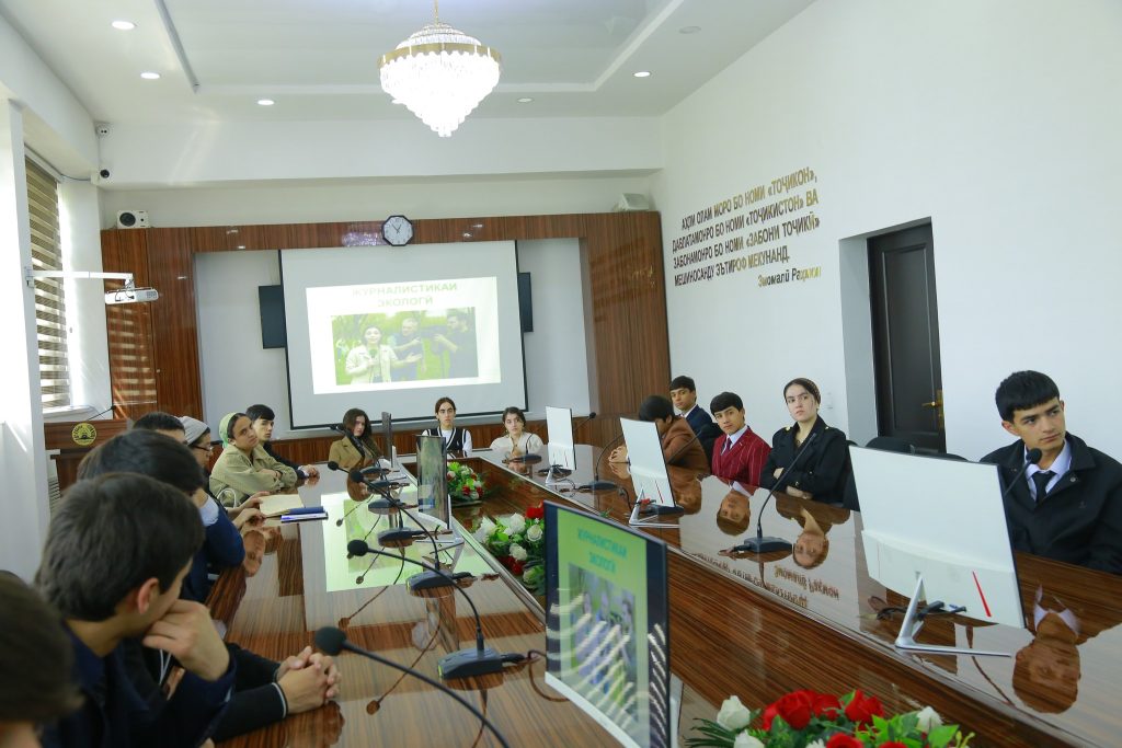 Дар фарҷоми дарс Ҷамолиддин Яъқубов китоби тозанашри худро бо ном “Журналистика ва маърифати экологӣ” ба омӯзгорони факултети филология ва рӯзноманигорӣ тақдим намуд. Китоби мазкур масъалаҳои боло бурдани сатҳи маърифати экологии ҷомеаро дар бар мегирад.