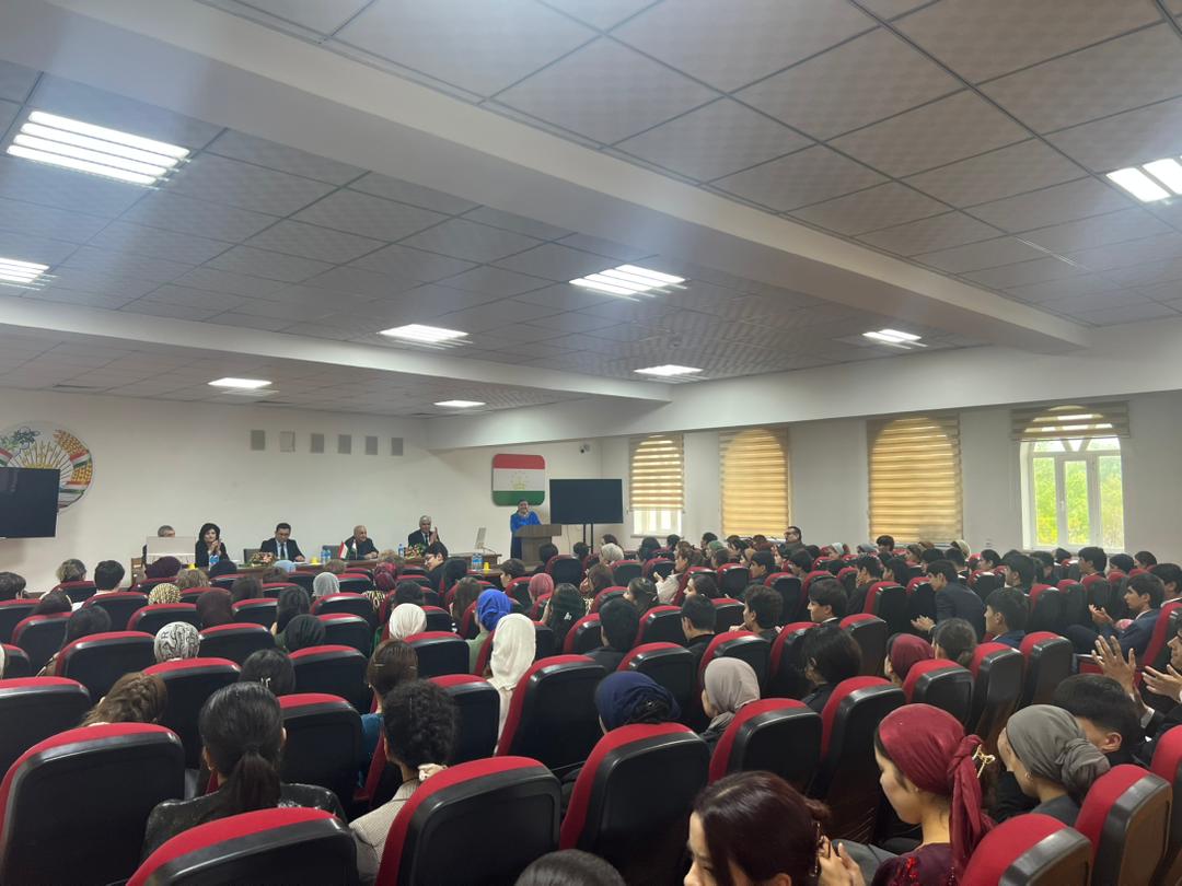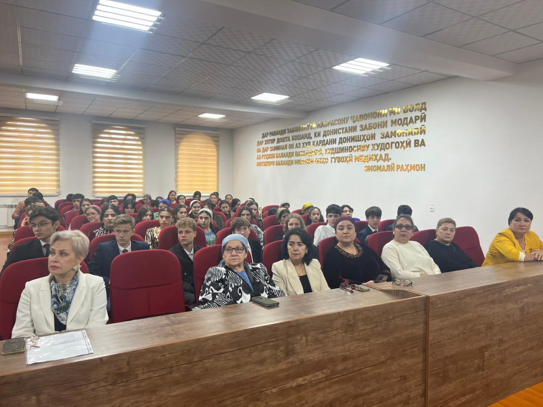 Ҳамчунин донишҷӯёни соли дуюми факултети забон ва адабиёти руси Донишгоҳ роҷеъ ба зиндагӣ ва фаълияти пурмаҳсули адиб маъруза пешкаш намуда, аз осори адиб шеърҳо қироат карданд.